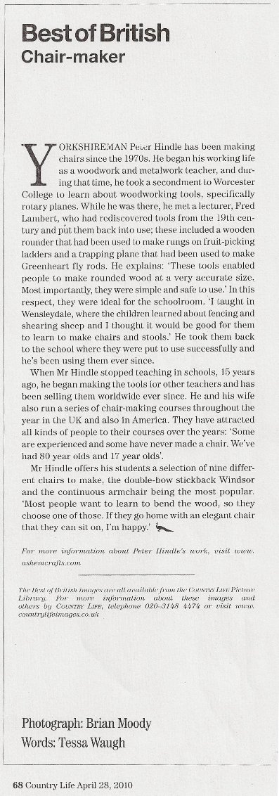 years he has been taking Shaker chair workshops in the USA and Windsor and stick-back chair workshops in England.